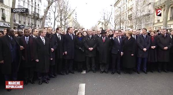 lasciandovi credere che fossero alla guida della folla oceanica della Marche Republicaine di Parigi: